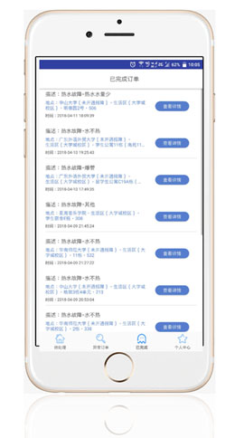 學生(shēng)微(wēi)信端申報(bào)報(bào)修內(nèi)容,ε§後台分(fēn)單派單,維修人(rén)員(yuán)APP接受信ε©任及時(shí)維修處理(lǐ)